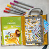 A PDF sewing pattern for a travel pouch to use as a project bag for stitching projects or for a kids activity pack.