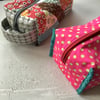 The Neat Boxy Pouch is an ideal first zipper project. It comes together quickly and is a great way of using feature fabrics or making patchwork versions.